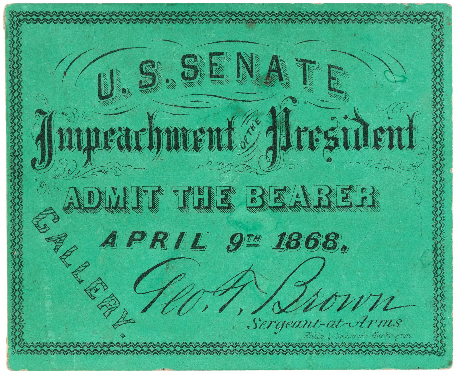 Committee to Impeach Andrew Johnson ticket, etc.7 days Left[Abraham Lincoln's Assassination]. Pass to Consp3 days LeftSen. Samuel Pomeroy letter re:1866 Civil Rights Bill7 days LeftUNITED STATES WAR OF 1812 SOLDIER'S SERVICE LAND WARRANTMar 06, 2026Zachary Taylor Appointment Signed as President.3 days LeftConstitution and By-Laws of John C. G. Key Camp,3 days LeftMirabeau Lamar Signed Land Grant. One partially3 days LeftAbraham Lincoln Military Appointment Signed. One3 days LeftImportant Pardon for S.C. Governor John Manning, by President Andrew Johnson2 days Left1903 Theodore Roosevelt Signed U.S. General Land Office Patent with Red SealMar 15, 2026Green 1893 Admit One Illinois Chicago Expo w/ Lincoln PMG CH64 EPQ GCCMar 04, 2026Andrew Johnson Signed Official Decree For Pardon2 days LeftPennsylvania Furlough. Photo, Widow Pension, etc.7 days Left1842 President John Tyler Signed U.S. Land PatentMar 15, 2026William P. Dole's 1865 Inauguration Ball Ticket.3 days Left1841 President John Tyler Signed U.S. Land PatentMar 15, 2026