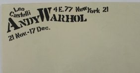 SoldAndy Warhol Signed Exhibition Invitation "Flowers"Andy Warhol Signed Exhibition Invitation. "Leo Castelli Gallery, NY." Flowers.Condition: Generally Good w/ Some Creases Due to Age. Dimensions: When Opened- 22" x 23".Provenance: From a Mid West PrivaSee Sold Price