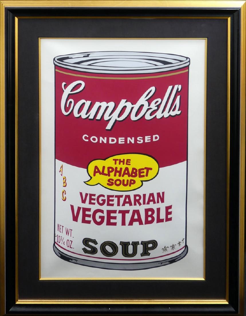 Andy Warhol American 1928-1987 Silkscreen ink on Paper In The Style of. Warhol & Haring Pop Art3 days LeftAndy Warhol- Silk Screen (Portfolio consisting of 10 different Soup Cans) "Campbell's Soup CanMar 17, 2026Andy Warhol- Silk Screen (Portfolio consisting of 10 different Soup Cans) "Campbell's Soup CanMar 19, 2026Andy Warhol, 'Soup Can Series I', 10 Piece Portfolio, Serigraph Sunday B. Morning11 hrs LeftAndy Warhol, "Soup Can Series I", 10 Piece Portfolio, Serigraph Sunday B. MorningMar 15, 2026Andy Warhol, 'Soup Can Series I', 10 Piece Portfolio, Serigraph Sunday B. Morning7 days LeftAndy Warhol, "Soup Can Series II" - 10 Piece Portfolio', Sunday B Morning Screen Print SetMar 15, 2026Andy Warhol, 'Soup Can Series Ii', 10 Piece Portfolio, Serigraph Sunday B. Morning11 hrs LeftAndy Warhol, 'Soup Can Series Ii', 10 Piece Portfolio, Serigraph Sunday B. Morning7 days LeftAndy Warhol Vegetarian Vegetable Campbell's Soup Can Custom Framed Print COA Limited EditionMar 17, 2026Andy Warhol (American 1928-1987) Lithograph after Warhol printed in Germany 25 years ago6 days LeftAndy Warhol - Campbells Soup ii - Silkscreen11 hrs LeftAndy Warhol "Soup can 11.48 (Vegetable w/ Beef Stock)" Silk Screen Print from Sunday B Morning.2 days LeftAndy Warhol "Soup can 11.48 (Vegetable w/ Beef Stock)" Silk Screen Print from Sunday B Morning.Mar 17, 2026Andy Warhol, Vegetable Soup Silkscreen7 days LeftAndy Warhol 'Campbell’s Soup'Mar 22, 2026