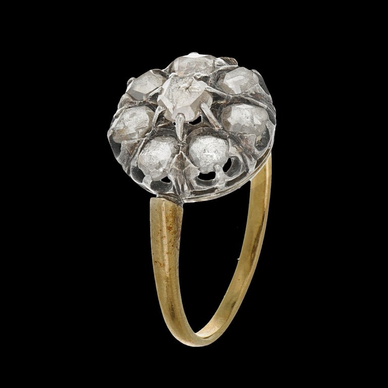 Anello in oro giallo e argento, al centro e a