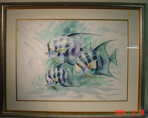 1 of 2 vintage prints of Tracy Taylor watercolor featuring collage of brilliantly colored fishChairish Auctions4.5(10.3k)$1503 days Left