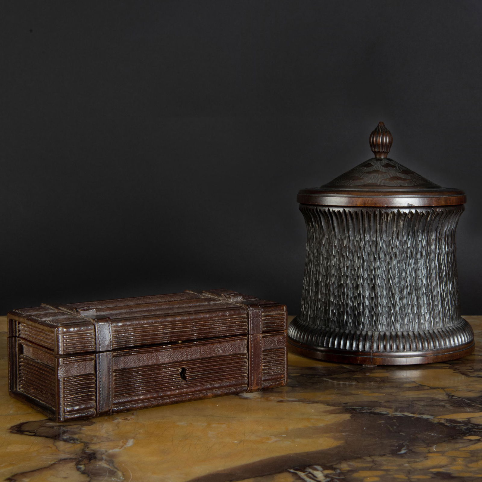 Anglo-Indian Ebony Engine Turned Covered Box