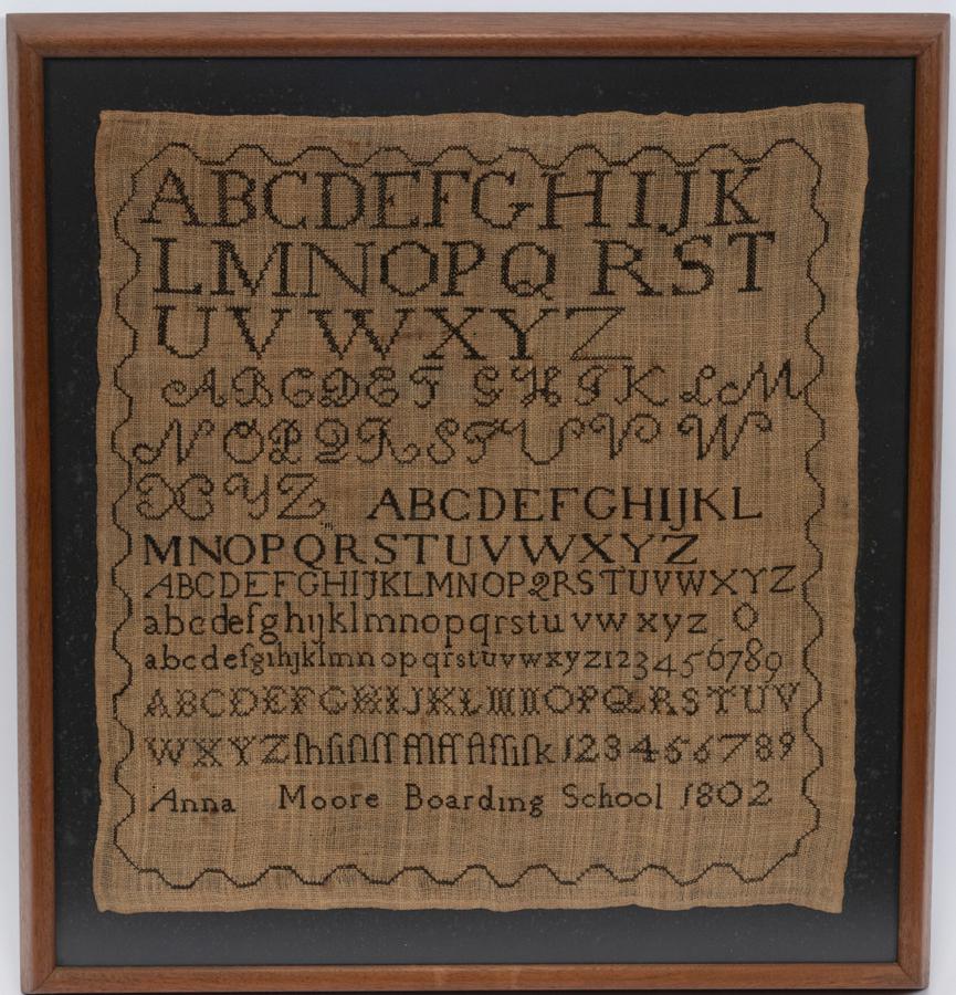 ANNA MOORE BOARDING SCHOOL, SAMPLER ON LINEN 1802