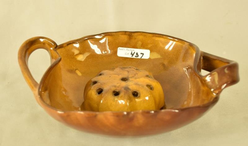Anna Van Briggle Double Handle Bowl & Frog