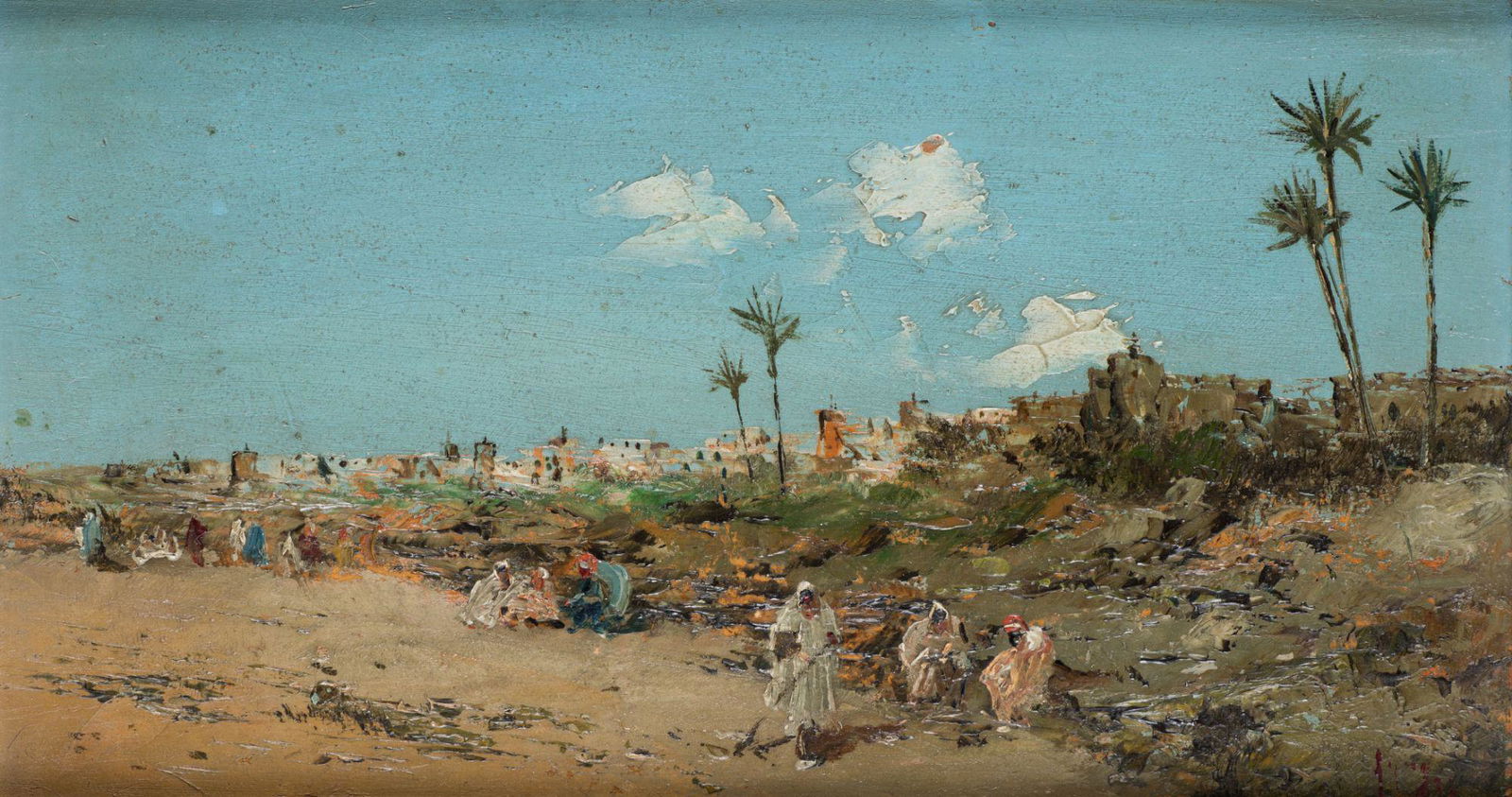 ANONYMOUS (19th century) "Moroccan landscape with characters"