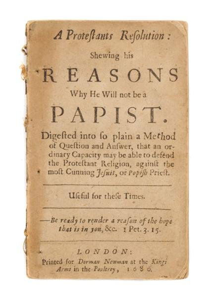 ANONYMOUS. A Protestants Resolution. London, 1680.