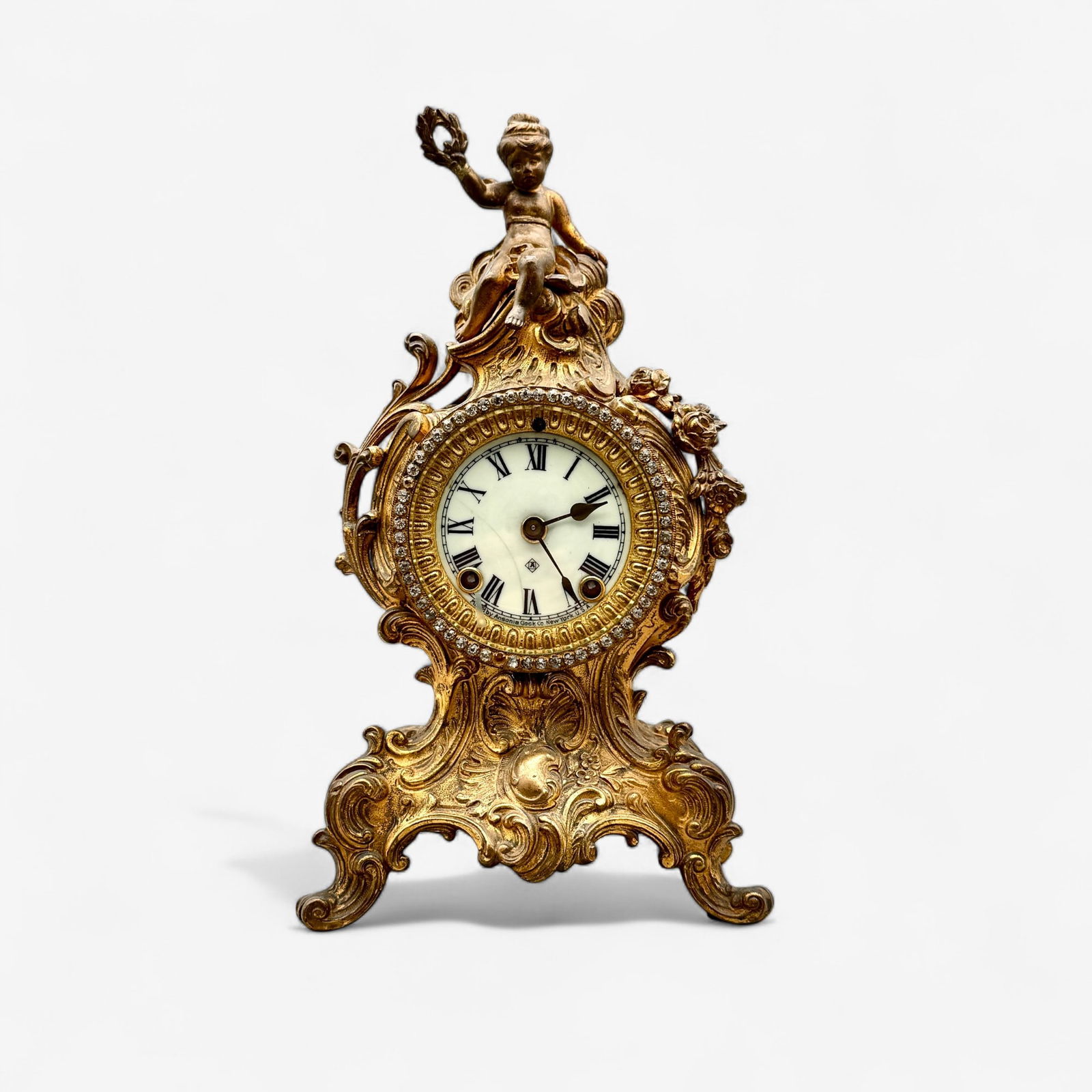 Ansonia Brass Cherub Mantle Clock
