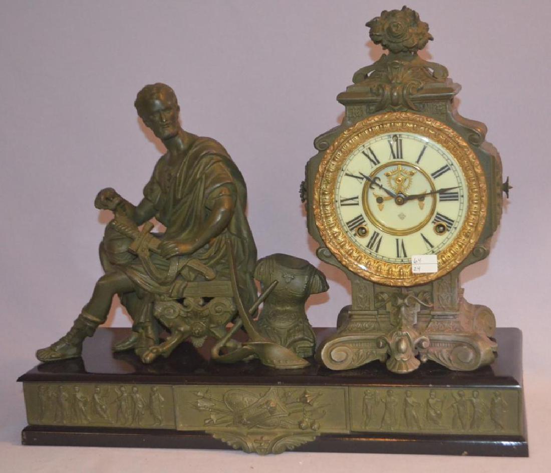Ansonia "Cincinnatus" Enameled Iron Statue Clock: Time