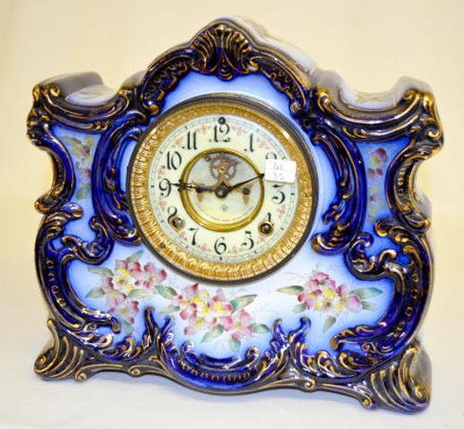 Ansonia "Ossipee" Cobalt Blue China Clock