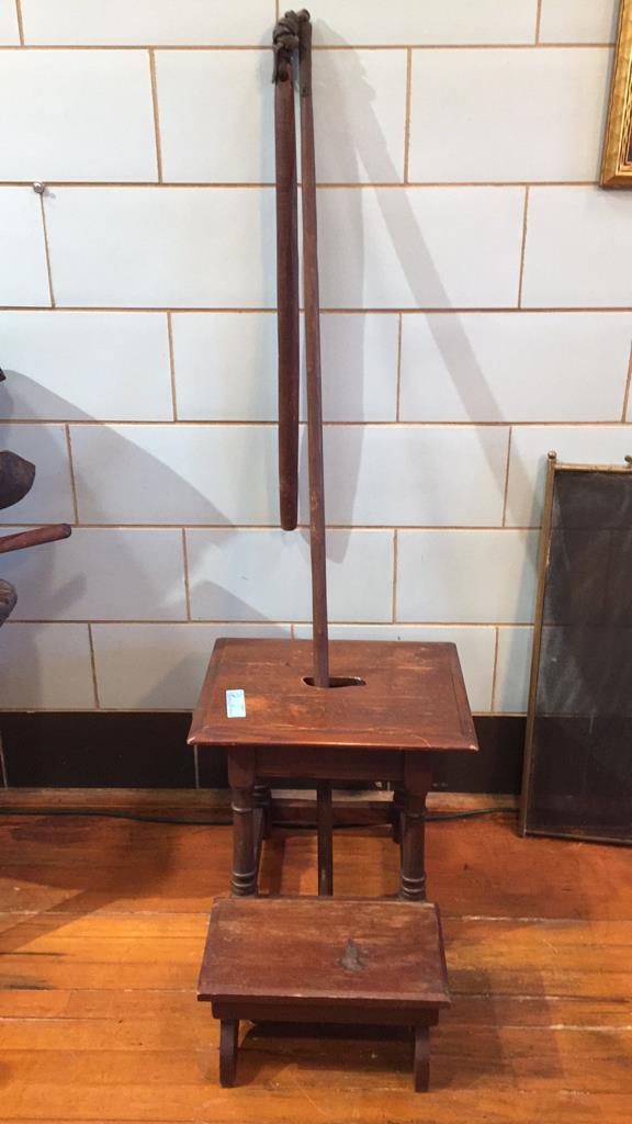 ANT WHEAT FLAIL / THRASHER, 2 WOODEN STOOLS