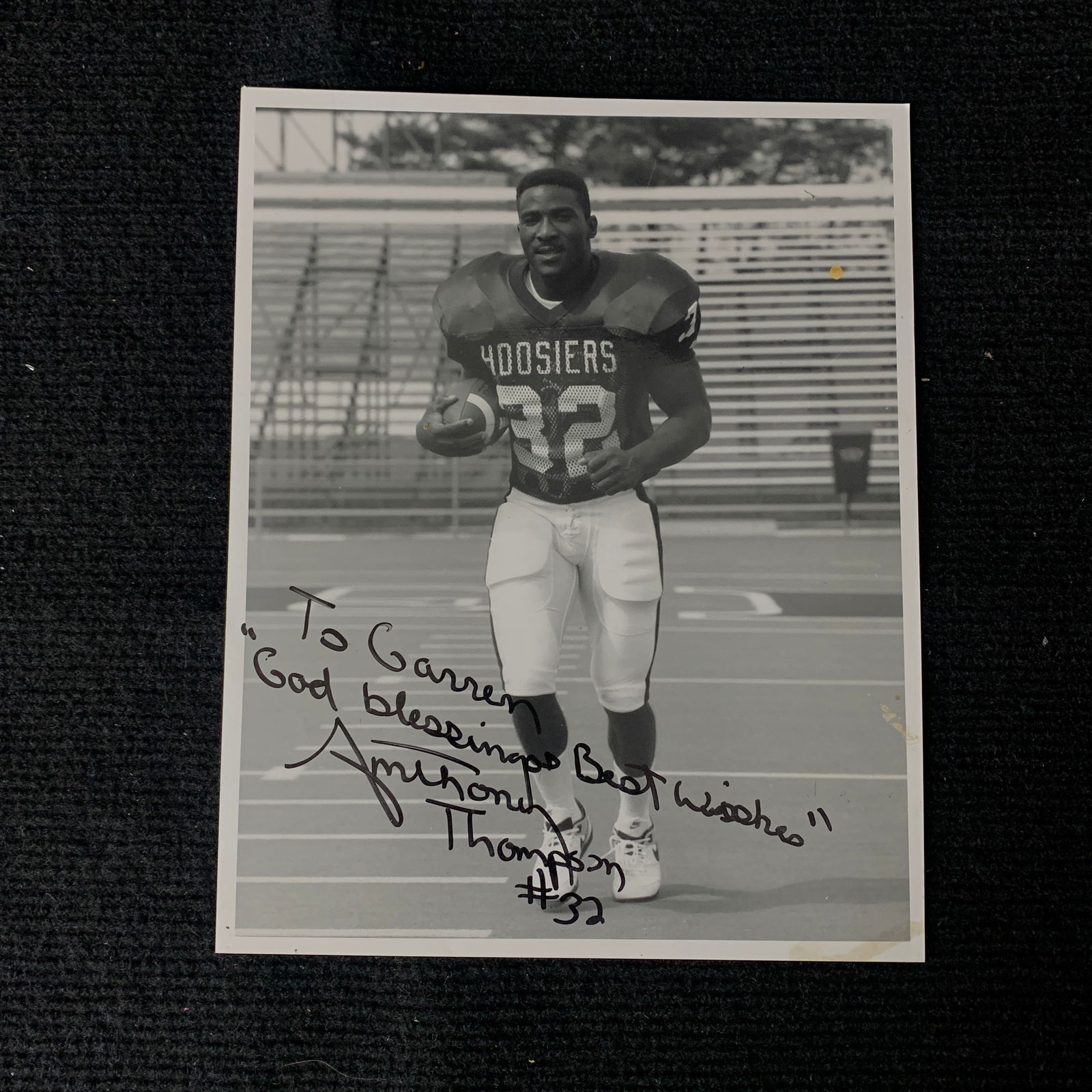 SoldAnthony Thompson Signed PhotoSigned Photo of Anthony Thomposon. Amazing running Back in the NFL. We are a veteran owned company. Please look at the pictures carefully to determine what you believe the condition of collecitible isSee Sold Price