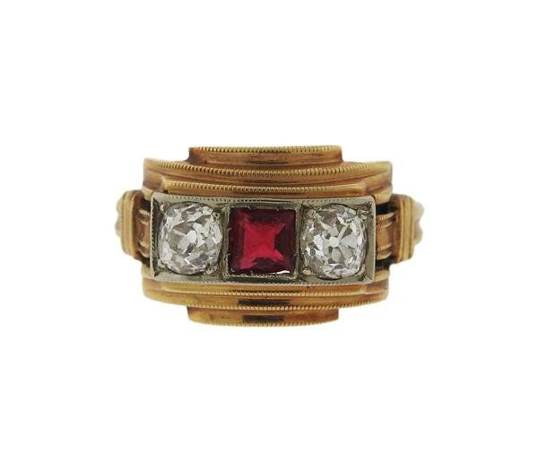 14 K Yellow Gold Ring, Full Cut Diamonds and Rubies 1950, 'Size 7 1/2 - 9', 12.7 gDuMouchelles4.6(859)$750Mar 19, 2026