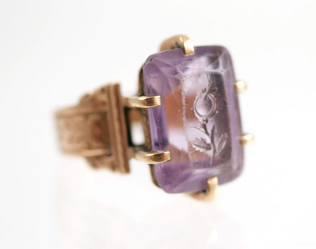 Antique 14k Gold Intaglio Amethyst Ring