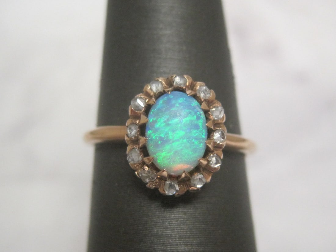 Womens Vintage Estate 14k Yellow Gold Diamond Opal Ring