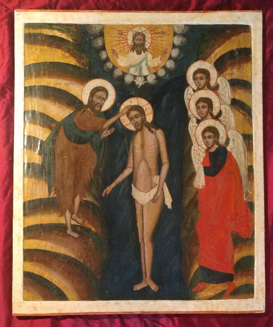 RUSSIAN ICON of BAPTISM of CHRIST antique 19th CENTURY