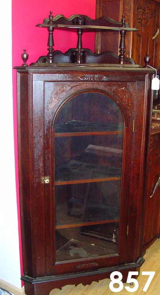 ANTIQUE 1870 RENAISSANCE CORNER CABINET WALNUT