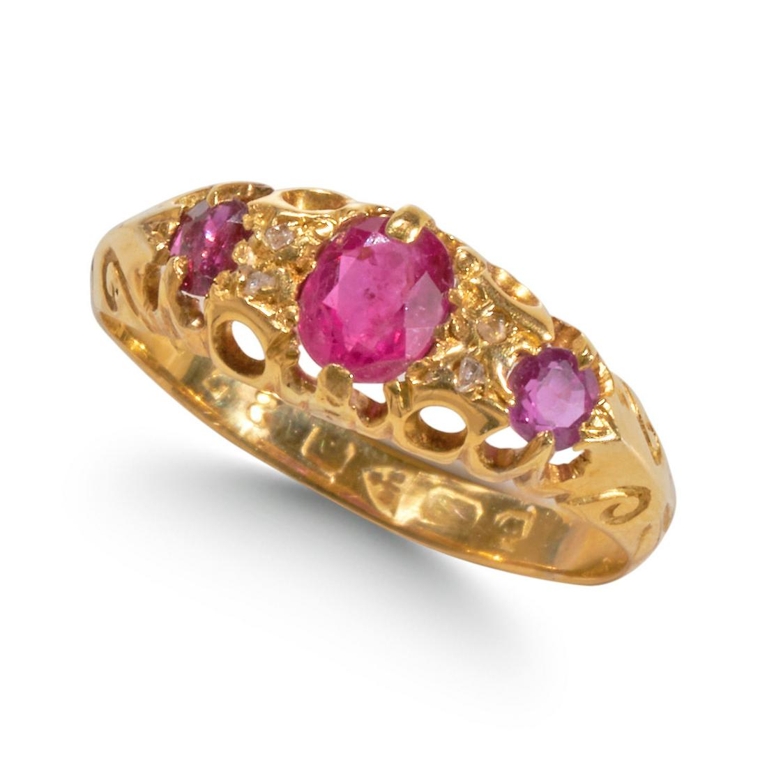 ANTIQUE, 18CT YELLOW GOLD, RUBY AND DIAMOND RING.