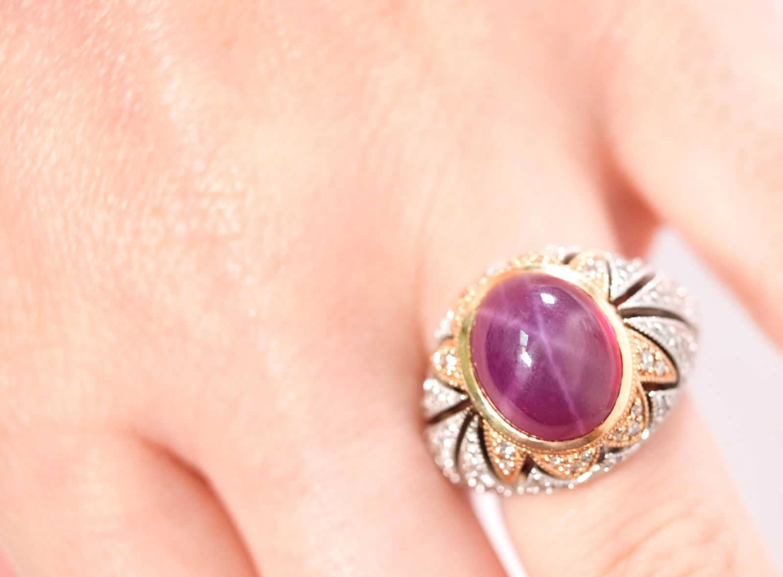 Antique 18k WGRG Star Ruby & Diamond Ring
