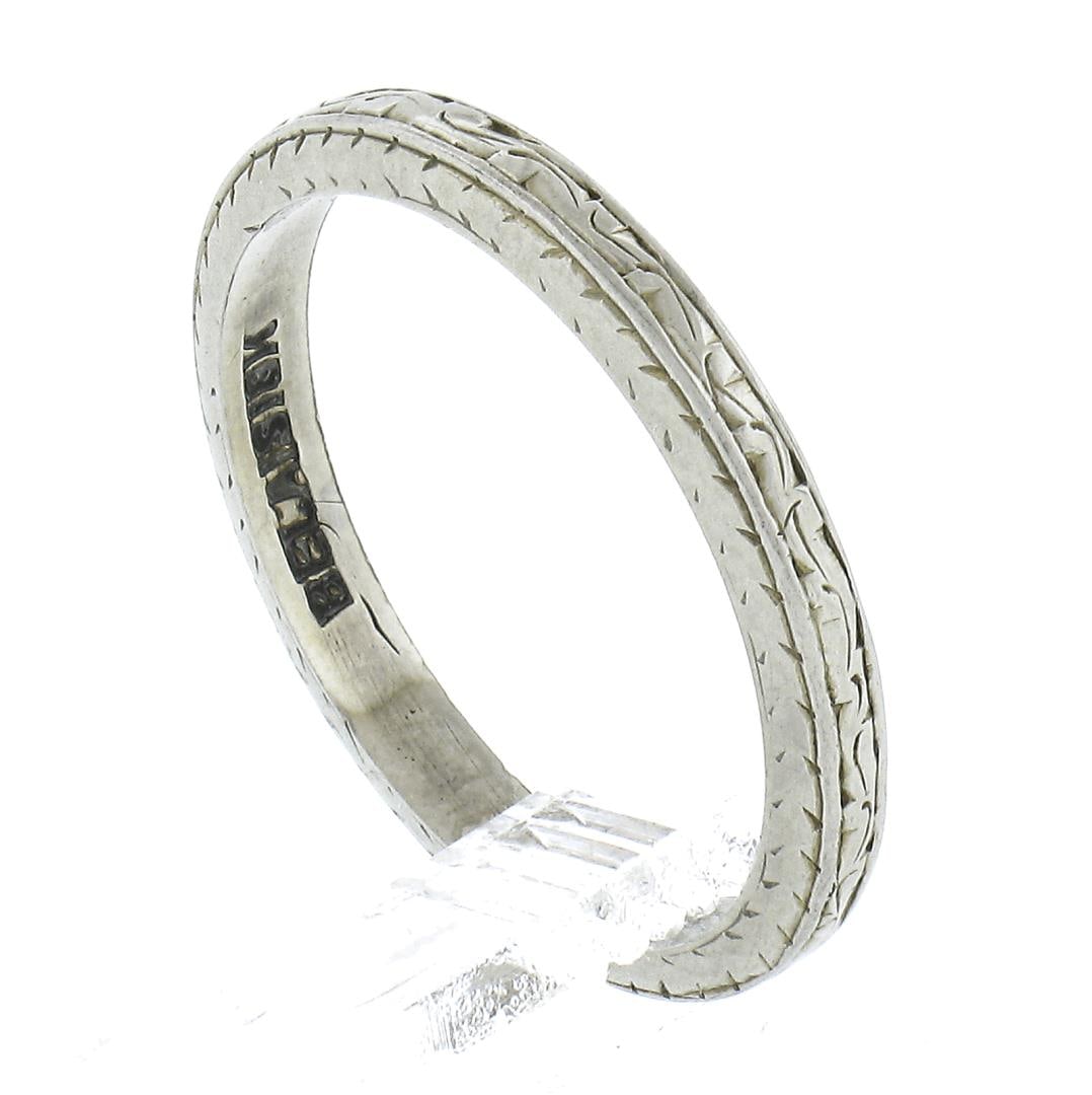 Antique 18K White Gold 2.3mm Crisp Scroll Work Eternity Stackable Band Ring