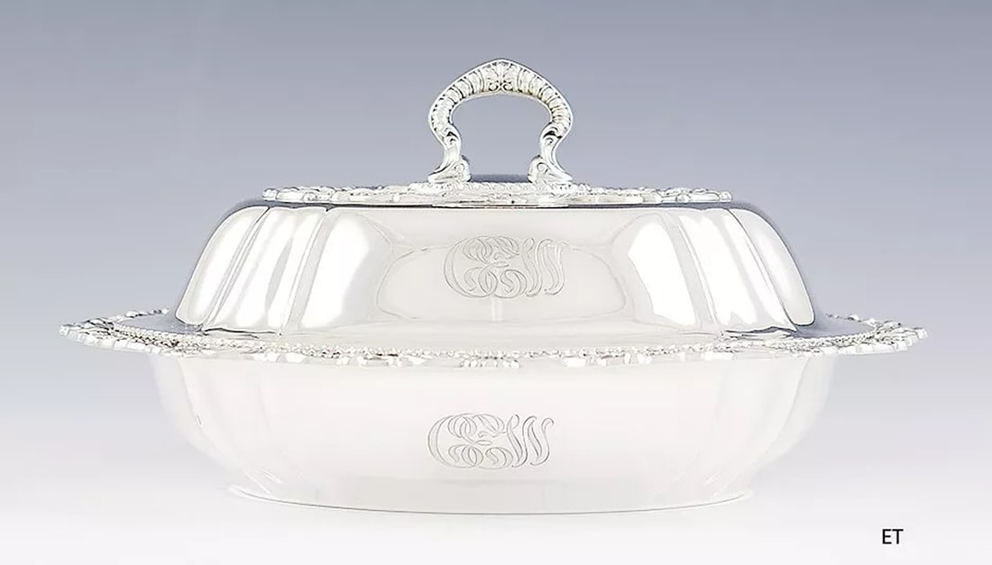 Antique 1903 Gorham Sterling Silver Covered Serving Dish Shell Scroll Motif