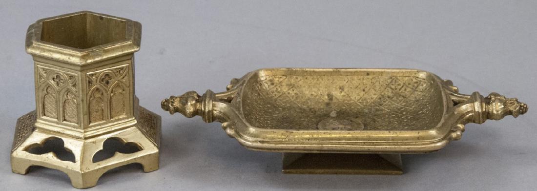 Antique 19th C Ormolu Gothic Revival Dish & Vase