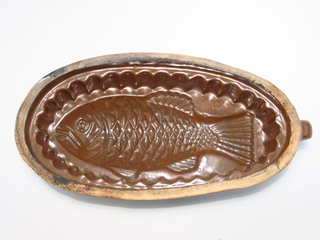 ANTIQUE 19TH C. PRIMITIVE REDWARE GLAZED FISH MOLD
