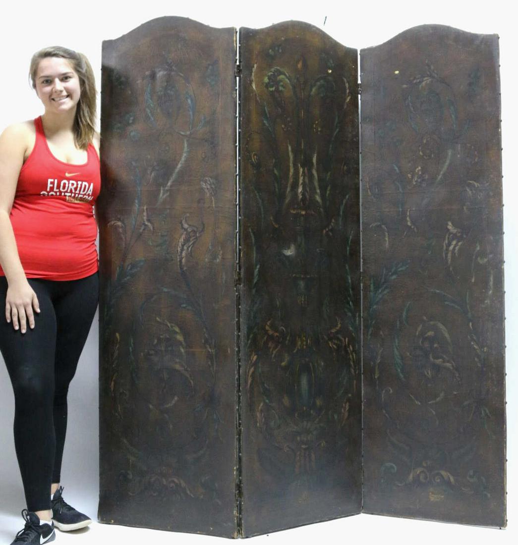 ANTIQUE 69" HAND PAINTED TRIPLE PANEL ROOM DIVIDER