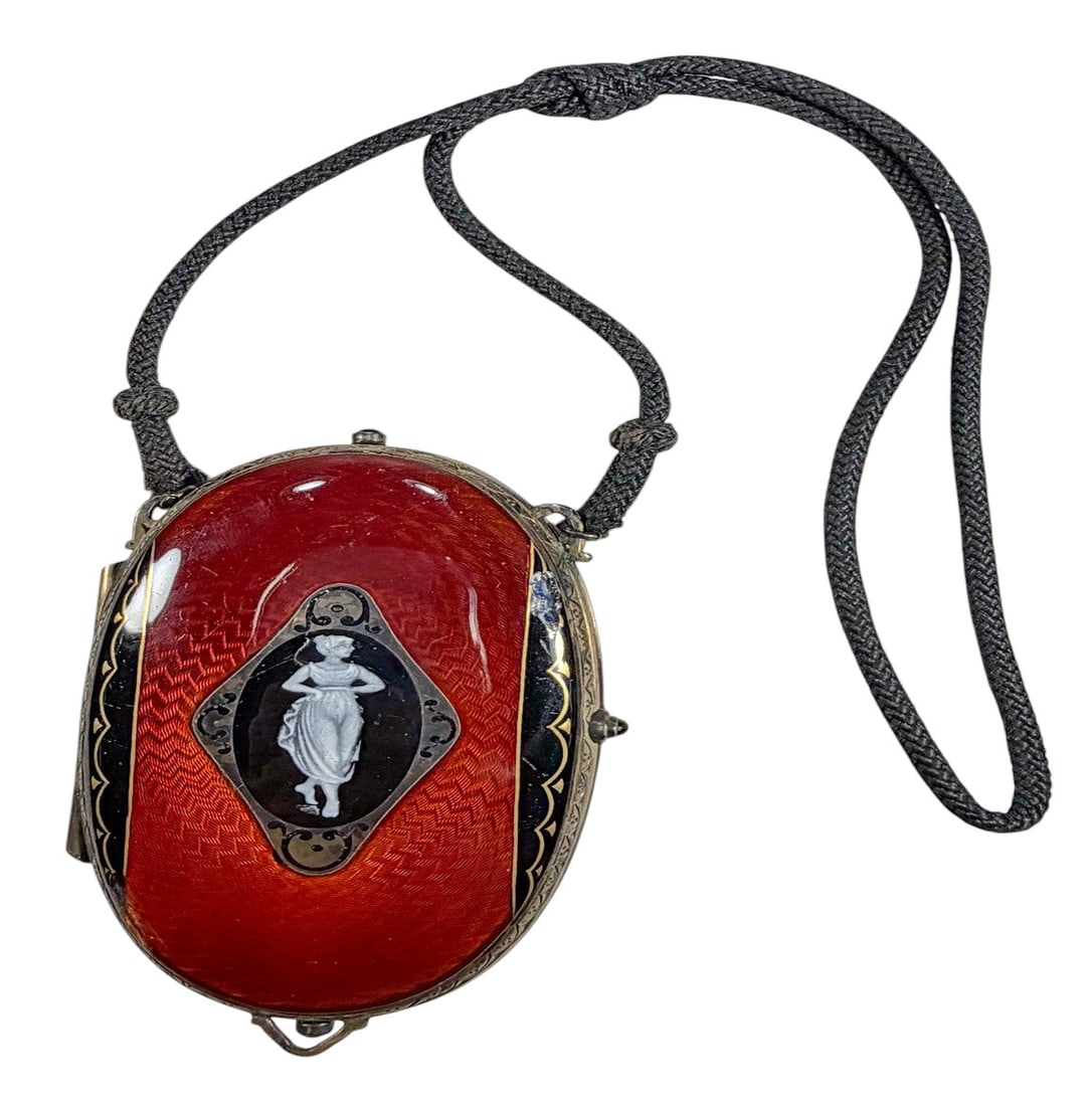 Antique .935 Silver Guilloche Enamel Compact Box