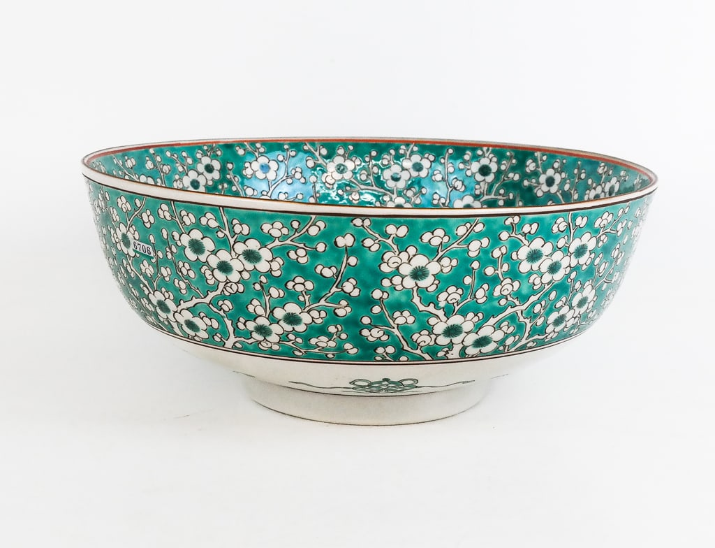 SoldAntique American Painted Wood Wash TubPlank construction, raised handles, blue exterior. 27 D X 21.5" H."See Sold Price