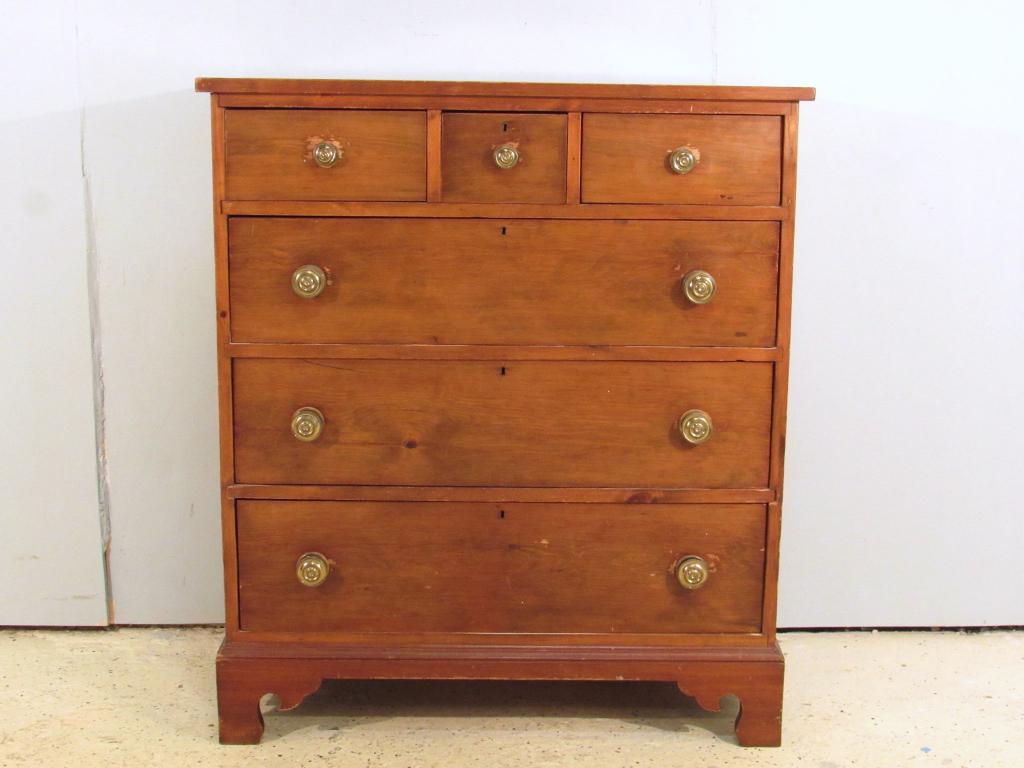 SoldAntique American Pine Chest3 small drawers over 3 full drawers, brass pulls. 39" X 19" X 44"h (A North Salem, NY Estate)See Sold Price