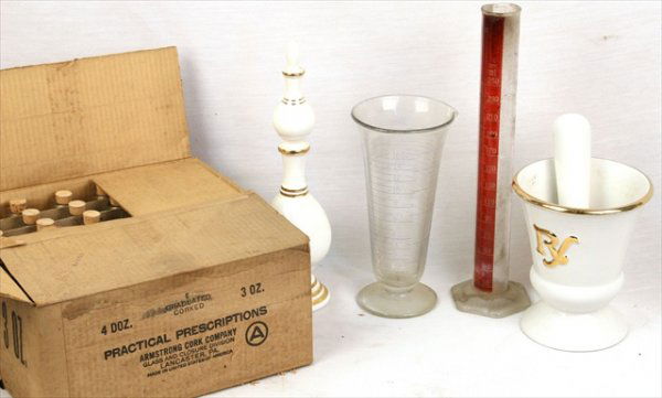 ANTIQUE APOTHECARY MEASURING BEAKERS BOTTLES