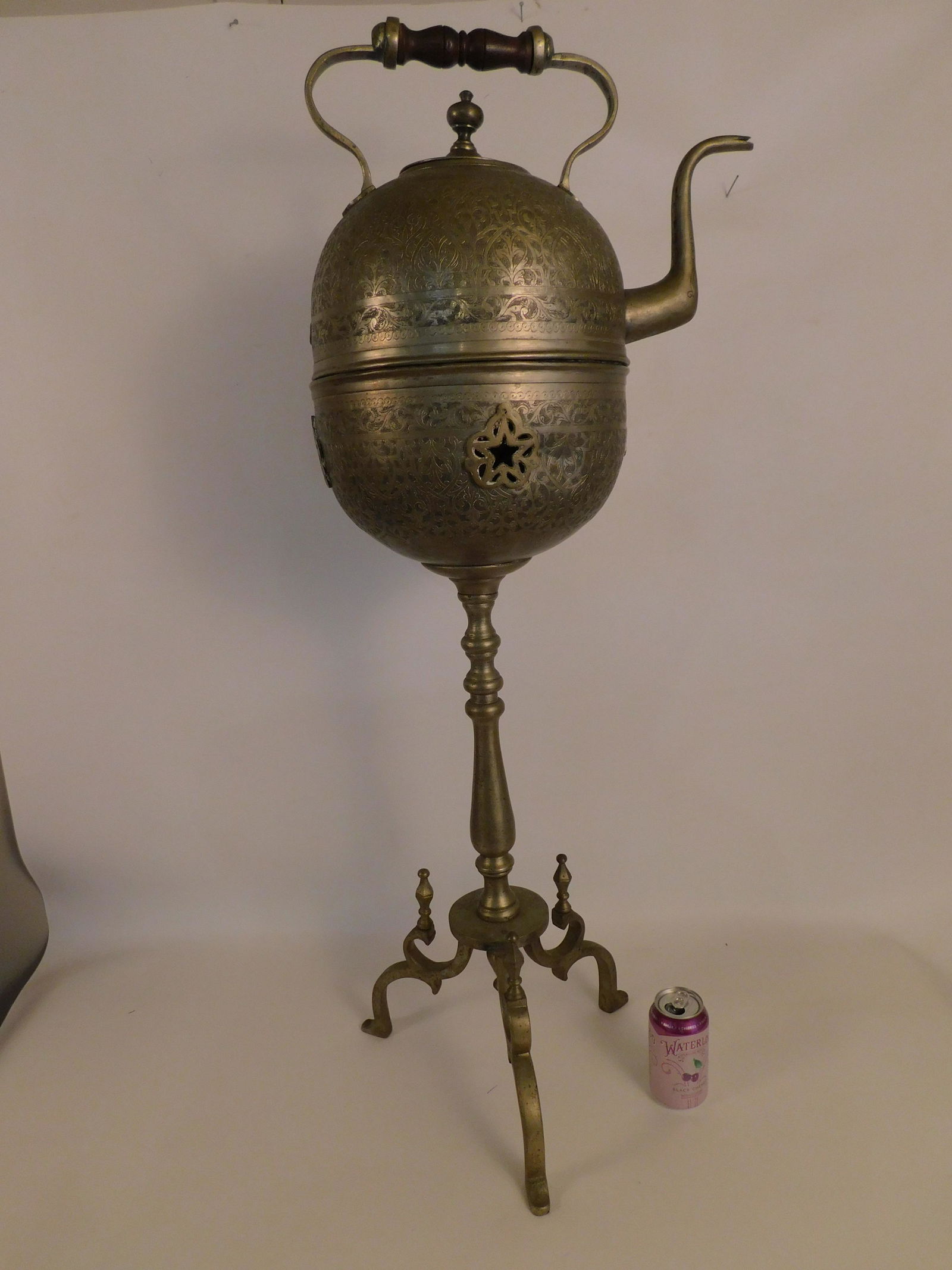 ANTIQUE ARABIC TEA KETTLE ON STAND
