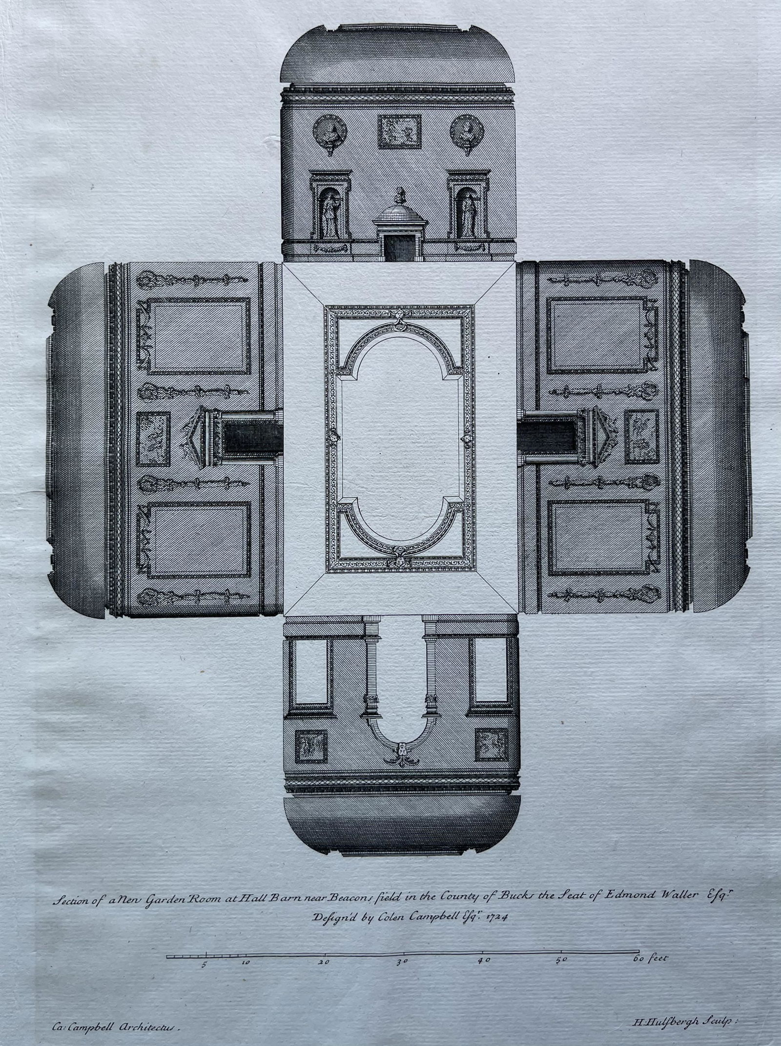 ANTIQUE ARCHITECTURAL ENGRAVING VITRUVIUS BRITANNICUS