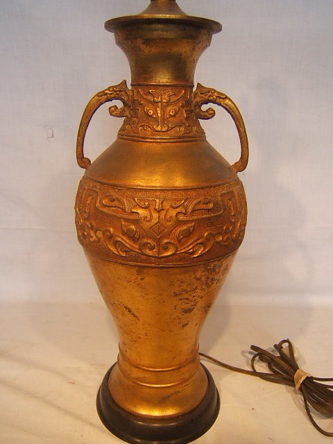 Vintage Boho Hammered Brass Gourd Table Lamp 29" Tall