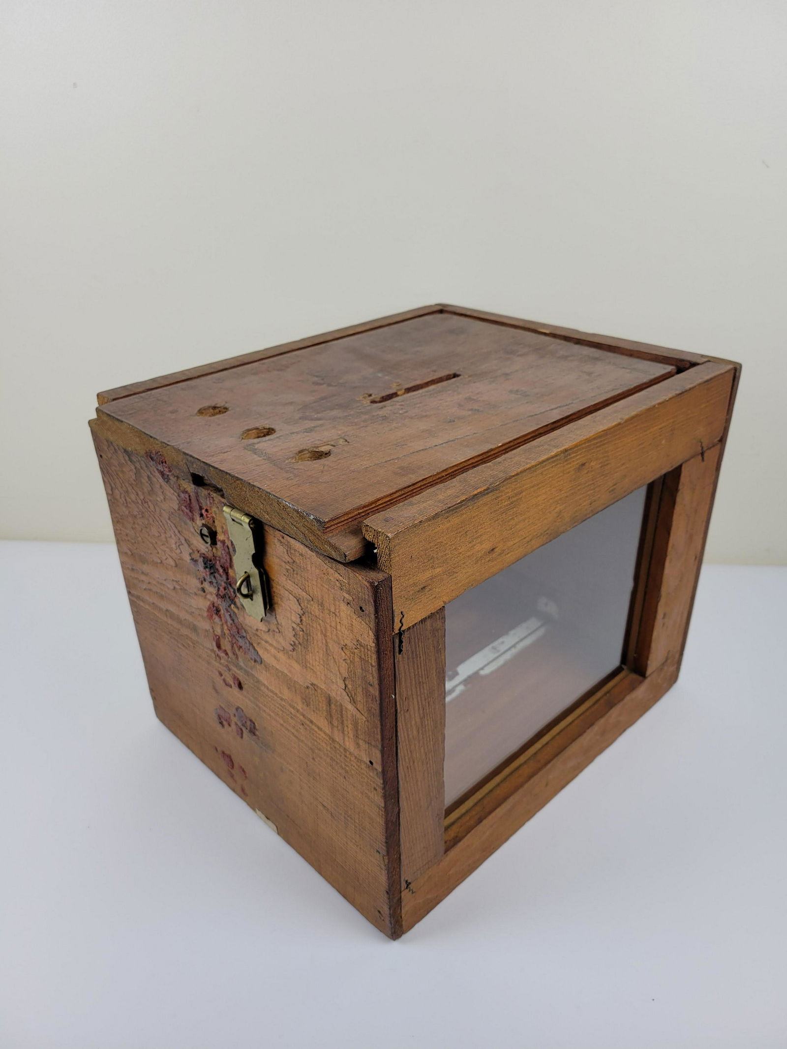 SoldAntique Brass National Cash Register Ticket Receipt BoxAntique box made by National Cash Register Co. for storing and locking tickets, receipts, or ballots. Brass with glass sides for viewing contents. The dimensions are 6.25 in x 6.75 in x 6.75 in. CondiSee Sold Price
