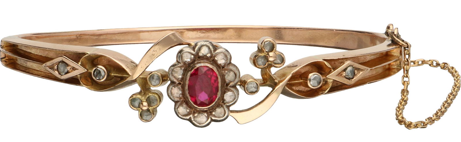 Ruby and Diamond Hinged Bangle Bracelet in 14k Yellow GoldEric's Estate & Jewelry4.6(529)$2,00020 hrs Left
