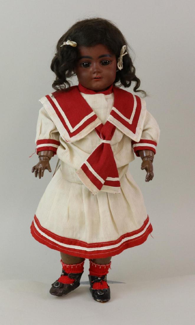 ANTIQUE BISQUE HEAD BLACK DOLL.