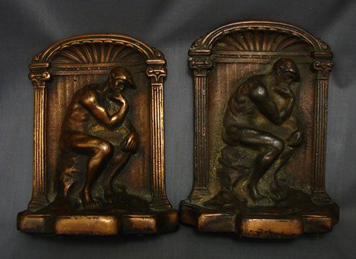 Antique Bookends, Thinker. Iron with copper finis