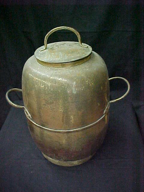 ANTIQUE BRASS COVERED POT