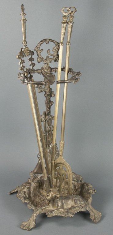 Antique Brass Fireplace Set with Dog