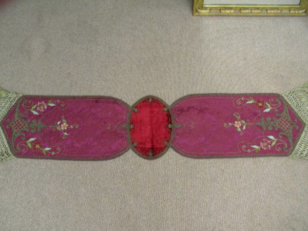 ANTIQUE BROCADE RUNNER FRINGED WITH CREWEL WORK