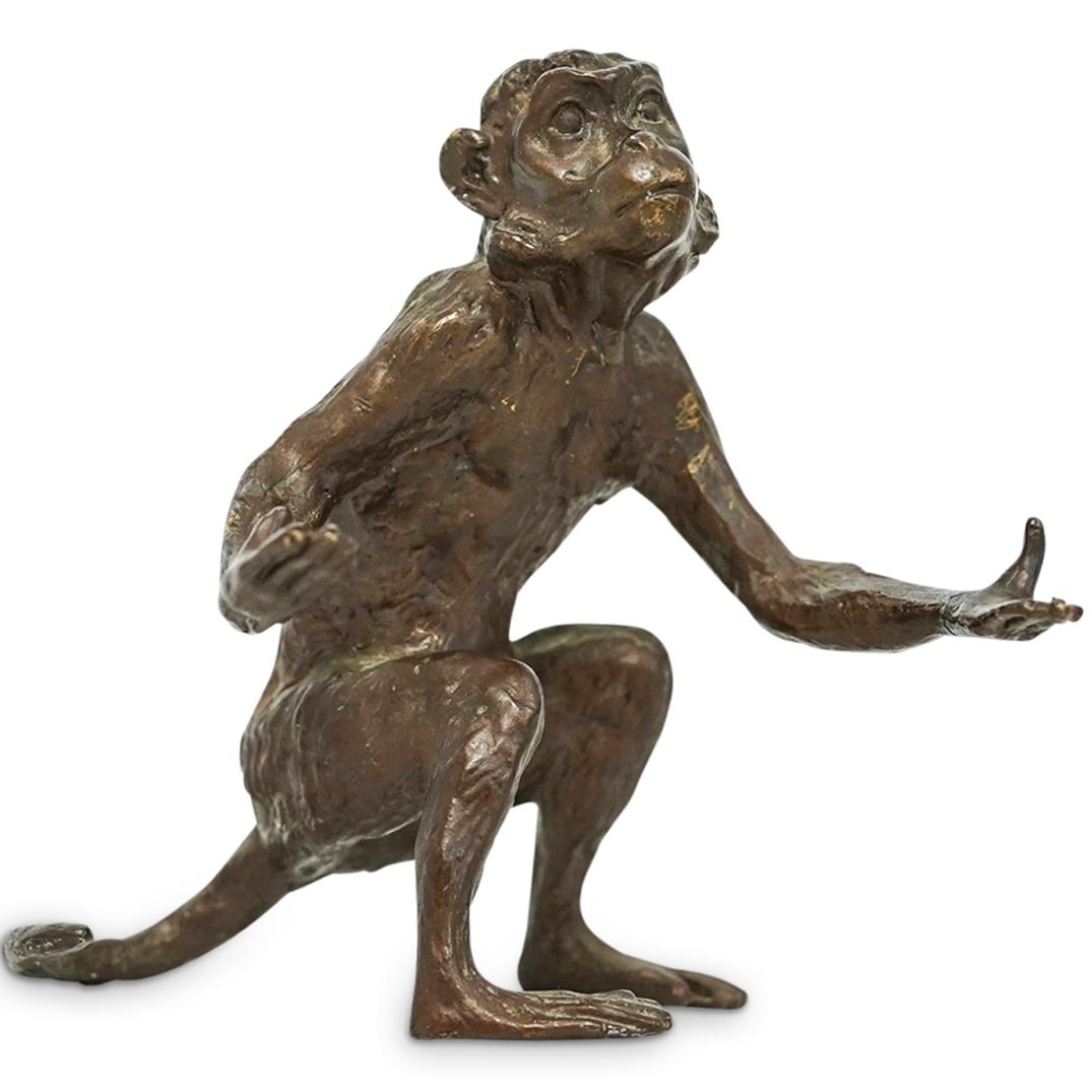 SoldBronze Monkey Solid Bronze Antique SculptureSolid Bronze Monkey sculpture. Not signed. Antique measuring approximately 11.5" tall. Great patina and aging. Overall a very nice "lucky" piece.See Sold Price