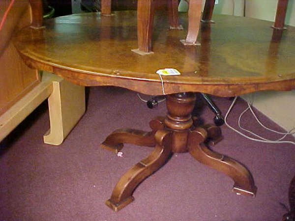 ANTIQUE BURLED WOOD DINING TABLE