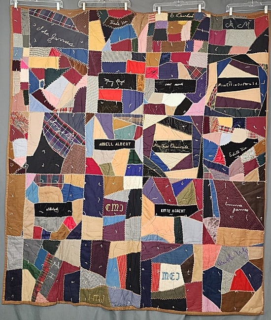 Antique c1910 Crazy Quilt - Signed