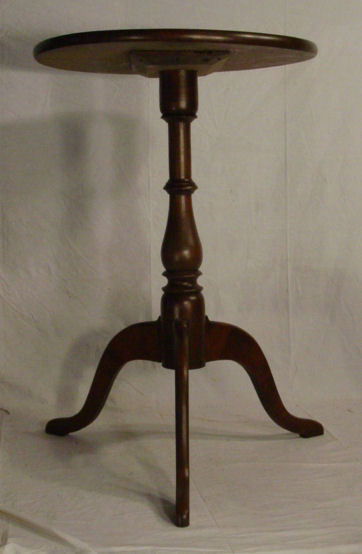 SoldFederal Cherry candlestandA late 18th/early 19th century New England Federal Period Cherry candlestand. Oval single board top on a turned stem with reeded detail and tripod base with shaped "Spider" legs. Refinished with minorSee Sold Price