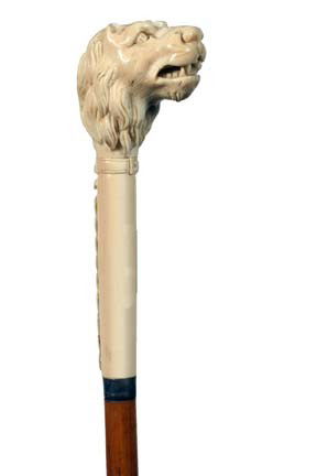 Antique cane Ivory lion with chain