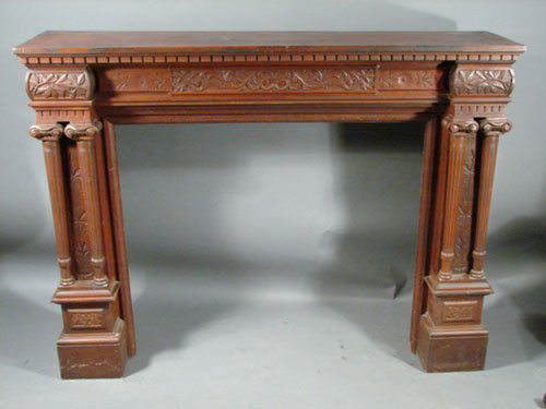Antique Carved Cherry Architectural Mantle