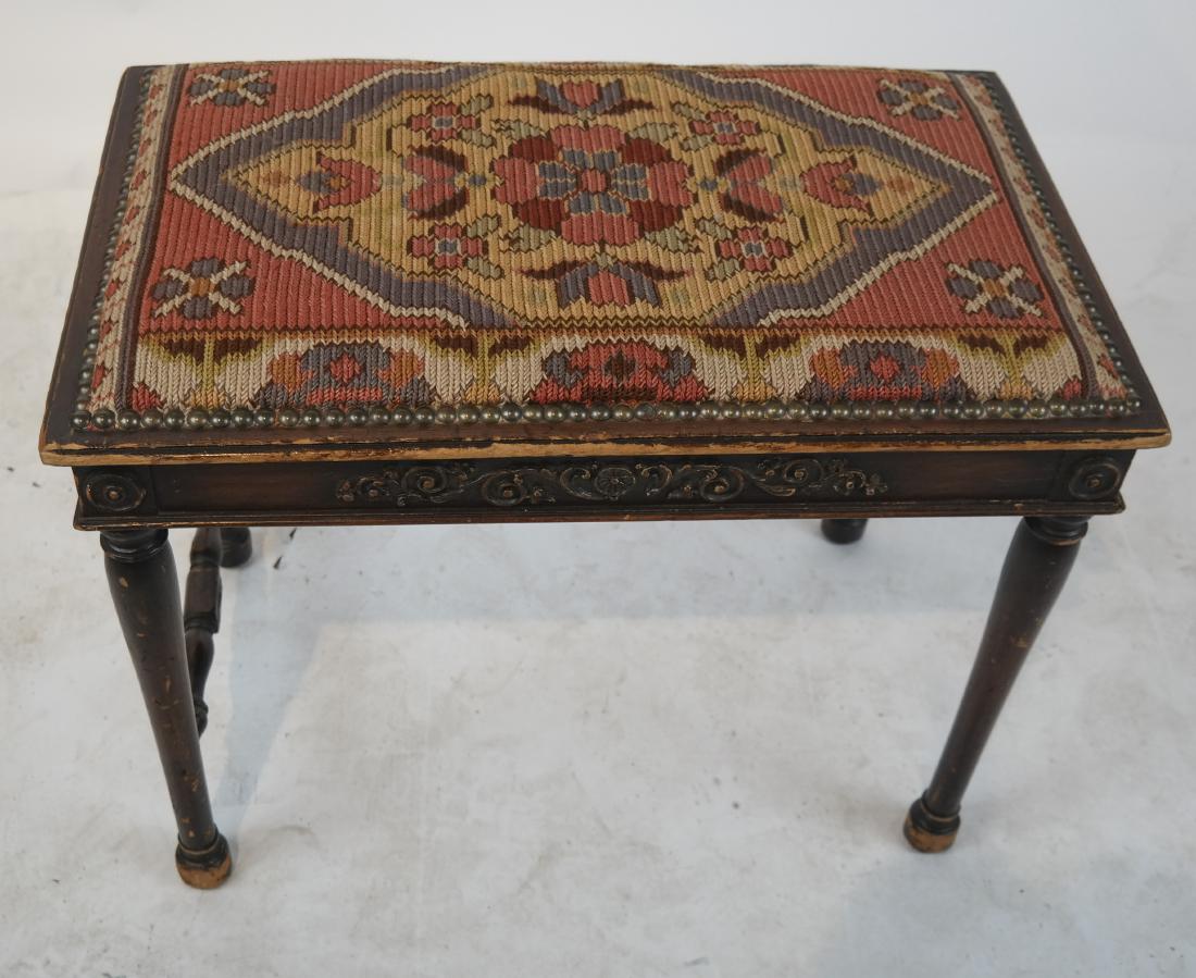 Antique Carved Needlepoint Bench