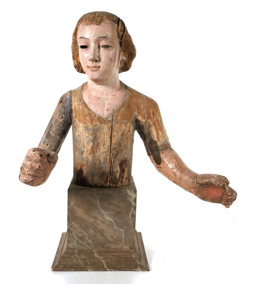 Vintage Reproduction Of Aztec Terracotta Statue19 hrs LeftStanding saint in flowing robes, European religious sculpture, 17th centuryFeb 25, 2026A Chinese Song Dynasty Style Wooden LuohanFeb 27, 2026Antique Wooden Crucifix Figure of Christ - Missing ArmsFeb 28, 2026A Continental carved wood and later limed figure of the risen Christ Probably 18th century, perh...Early Painted & Carved Madonna Figure6 days LeftSaint's head, Mexican School, 16th centuryFeb 25, 2026Fade Color Rustic Wood Sitting Monk Lohan StatueHead of Christ. Spanish Gothic sculpture. 15th centuryFeb 25, 2026Support pour meuble en porcelaine de Doccia, vers 1750 A small Doccia furniture mount, circa 1750Figural Wood Carving Architectural ElementMar 06, 2026Immaculate Virgin, 17th CenturyFeb 25, 2026Painted Stone Seated BuddhaFeb 27, 2026Colonial Peruvian Canvas Mache JesusFeb 27, 2026Waka-Sona Statue. Baulé Village, Ivory Coast. 20th Century (ca. 1960)Feb 25, 2026Old Santa AnaFeb 25, 2026