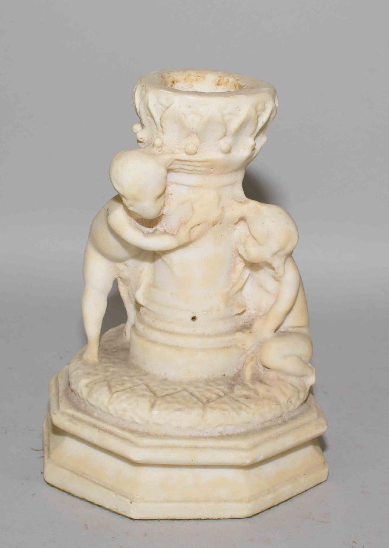 ANTIQUE CARVED STONE CANDLESTICK. 7''H.